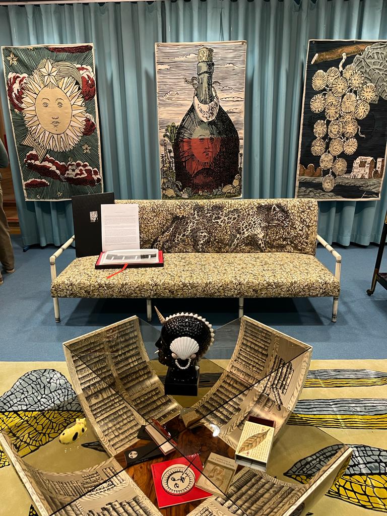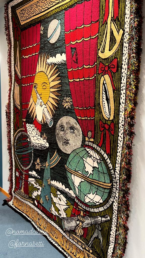 “Il Lunario del Sole” is a project that represents twelve anthropomorphic suns each dedicated to a month. The cover of the Lunario del Sole becomes the largest and most precious tapestry, created in collaboration with A Collection, a project association that combines contemporary art with the ancient technique of tapestries and technology. The main materials with which it was made are recycled plastic threads and organic yarns to combine art with respect for the environment